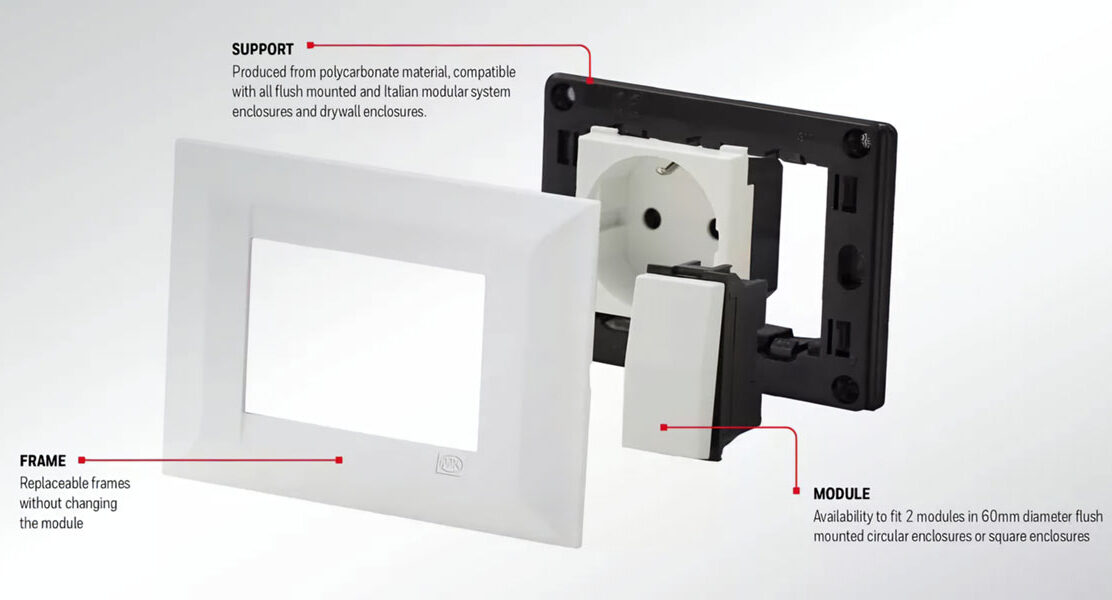 A new Italian standard wiring devices range which complies with the IEC Standard. Created to meet the fundamental needs for high quality, reliable switches and sockets from a trusted manufacturer at a competitive price.