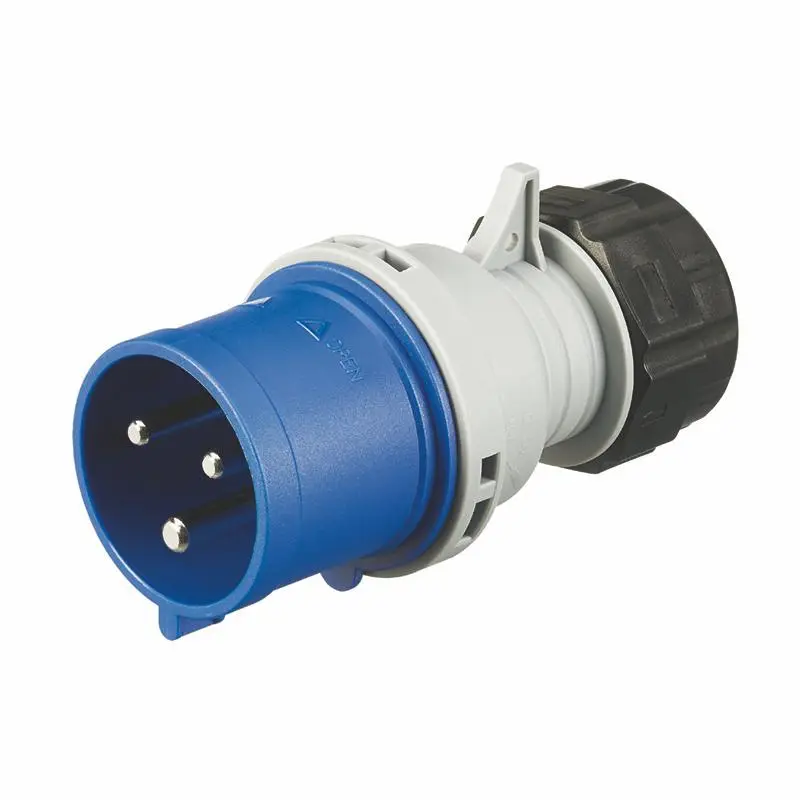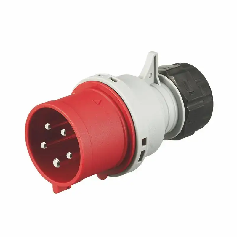 IP44 rated, 32A, 380-415V angled socket outlet.